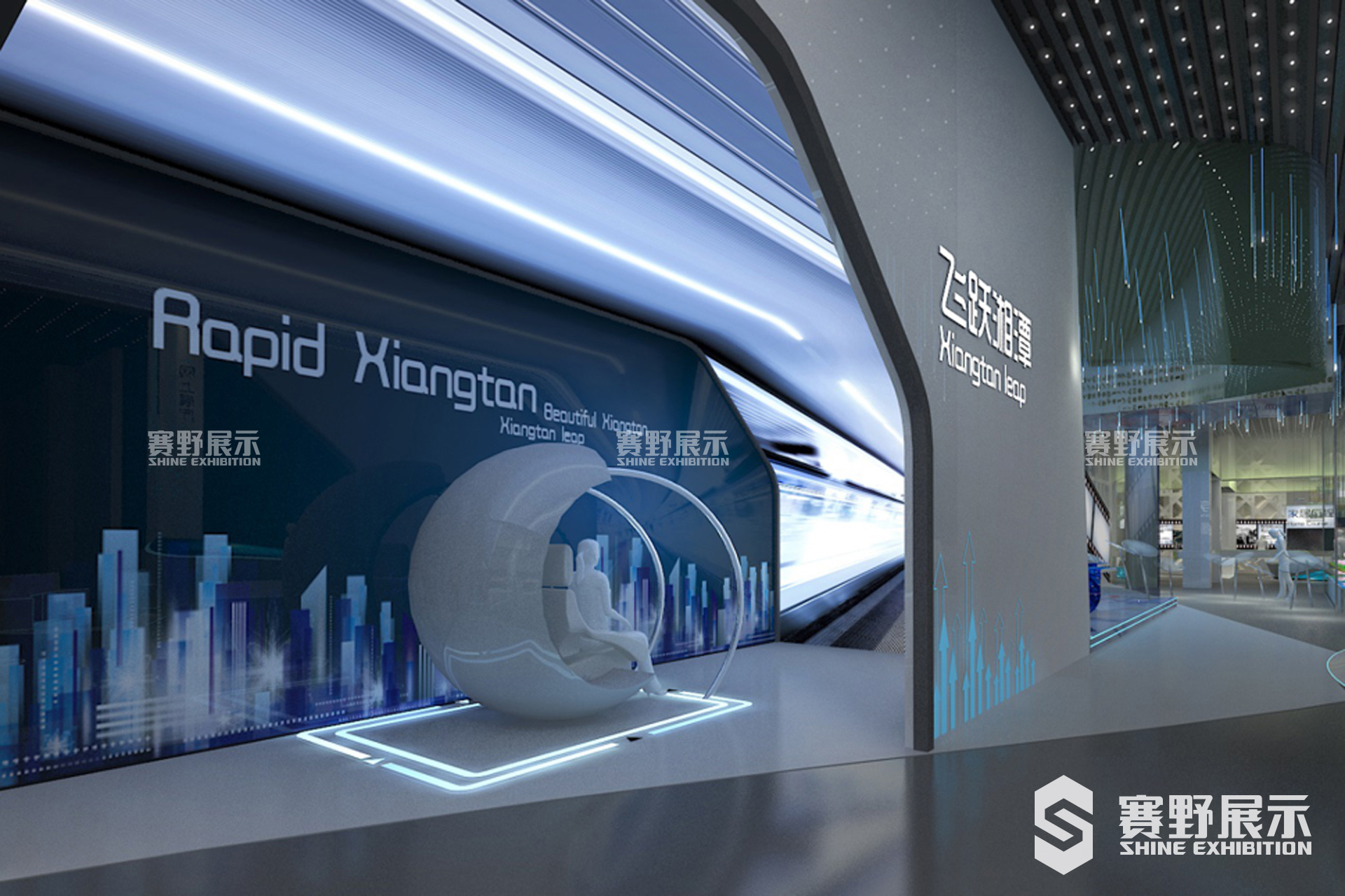 湘潭规划展示馆设计理念分为概念独创性、空间突破性、展陈互动性三大块。对于湘潭规划馆,提出“湘潭·城市生命”的概念,将布展内容赋予生命的活力,将湘潭的城市生命体具象化,让观众在参观过程中感受到湘潭城市的生命活力。赛野展示在空间设计中,将湘江奔涌的流水,在空间分隔布局,墙面大范围的使用,观众入展馆,如同包围在一个流动环绕的生命体中。区别于其他规划展馆陈为主,观看为主,互动少的弱点,设计多媒体互动展项,让观众参与规划城市的建设中,共同谱写未来湘潭的篇章。