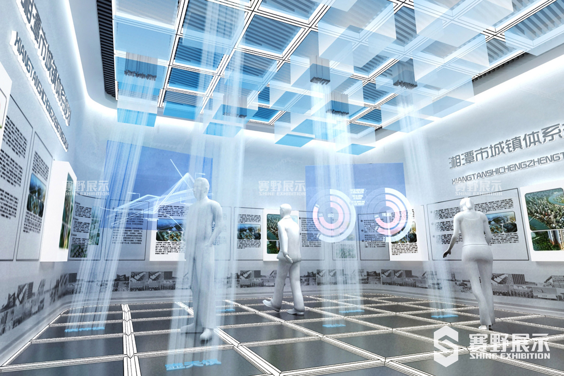 赛野展示在展馆中特地采用全息投影、触控感应一体播放系统、大型多媒体互动沙盘、互动感应投影墙、水纹形象墙、LED艺术墙面、大型多媒体互动、一体模型触摸屏、机械动态模型、壁挂式沙盘、地嵌式沙盘模型、互动触摸屏、通电玻璃、互动多点触摸桌等高科技展项,体现了湘潭在未来规划发展中的信息数字化,该厅采用多媒体技术,营造一个超现实的数字空间,诠释智慧城市给人民带来的便捷与惊喜。借助非接触式互动感受系统,市民可体验“智慧交通”、“智慧社区”等带来的变革创新。