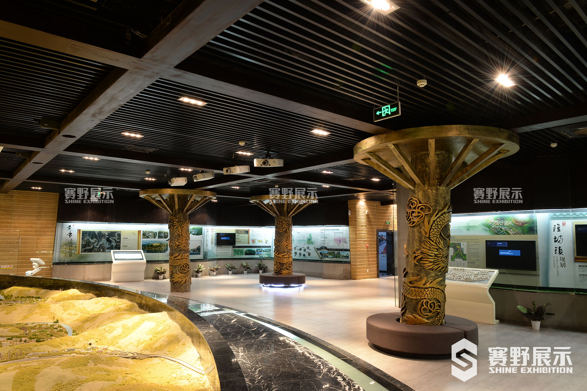 赛野展示为营造黄陵规划馆千年古韵的恢宏气势,在设计上以“龙图腾、黄帝像、陶土文化”为设计创意元素,将中华古文明展现得淋漓尽致。空间的文化氛围与高科技展项应用的完美结合,让世人漫步于黄陵城市规划馆之中,穿越古往今来,感受城市变迁,领略崭新城市的风貌,期待未来黄陵的绚烂辉煌。