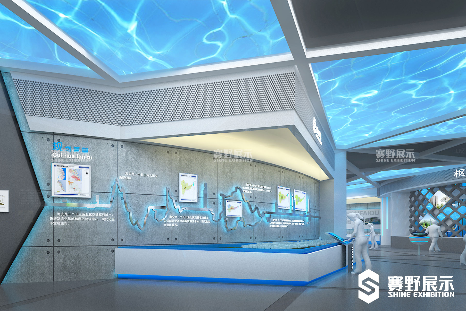 展馆运用了海安的特色“水”作为整个布展设计的元素,提炼了海安这座城市所汇聚的“正能量”作为展示主题,将海安城市的历史文化与城市规划巧妙的融合在一起,全面彰显海安“海纳百川”的城市魅力。
