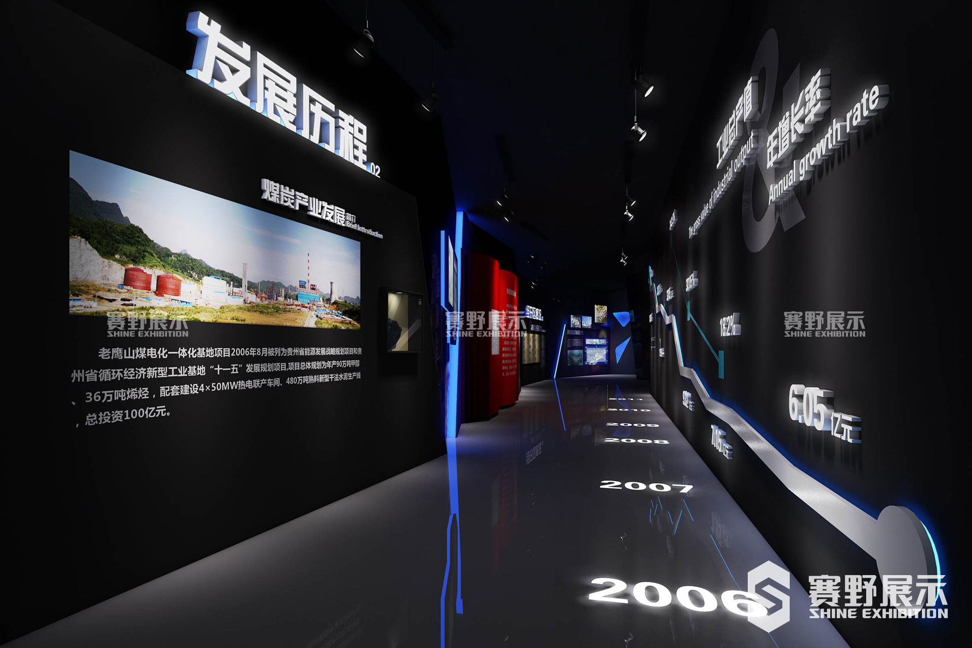 赛野展示将煤炭的不规则切面造型为原型,进行抽象、打散、重组后运用到空间设计中。实现建筑、外展、内战三位一体,从外到内统一设计风格,诠释煤炭产业循环共生的展示主题。
