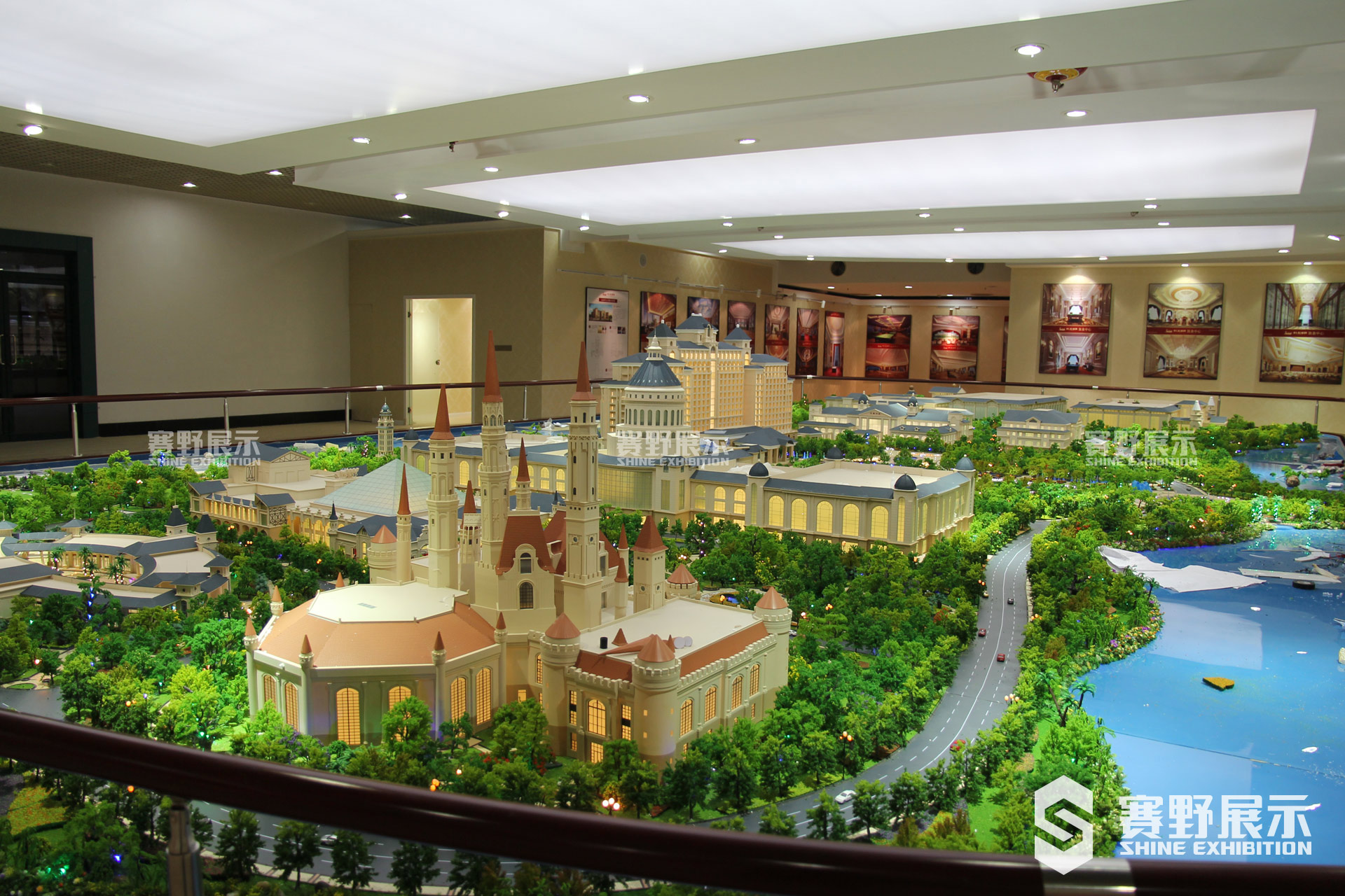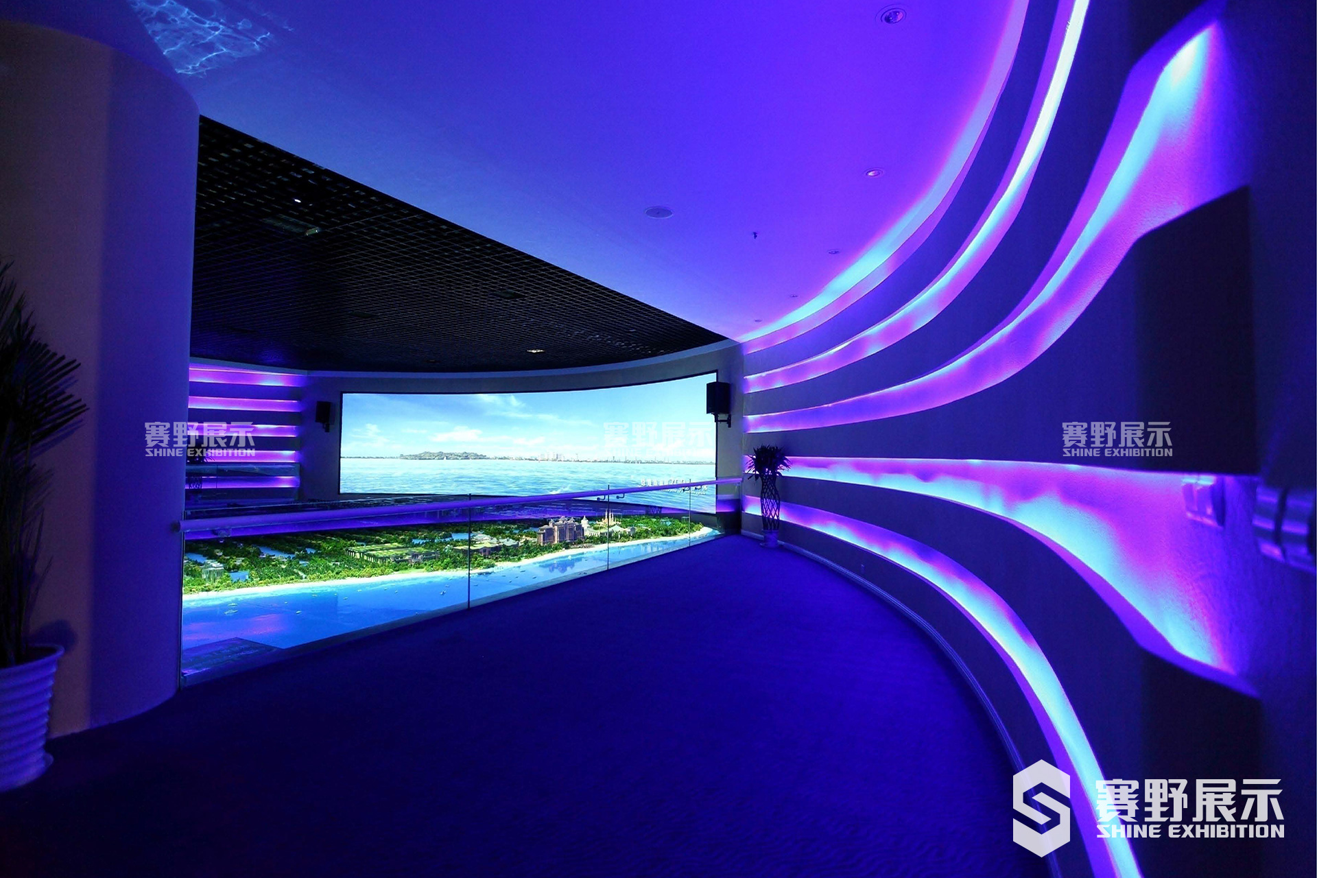体验馆结合欧式异国风情和园林特色元素,赛野展示综合运用声光电数字沙盘、壁挂式数字沙盘、多通道大型弧幕、弧幕VR漫游、冷光源技术、互动地幕、互动屏等高科技展示技术,共同演绎沉浸式体验空间。主展区采用大型弧幕和数字沙盘联合打造,逼真的沙盘模型配合声、光、电的完美演绎,全方位展现“恒大•海上威尼斯”的规划全景和璀璨蓝图,向世人呈现一个世界瞩目的“东方威尼斯”!