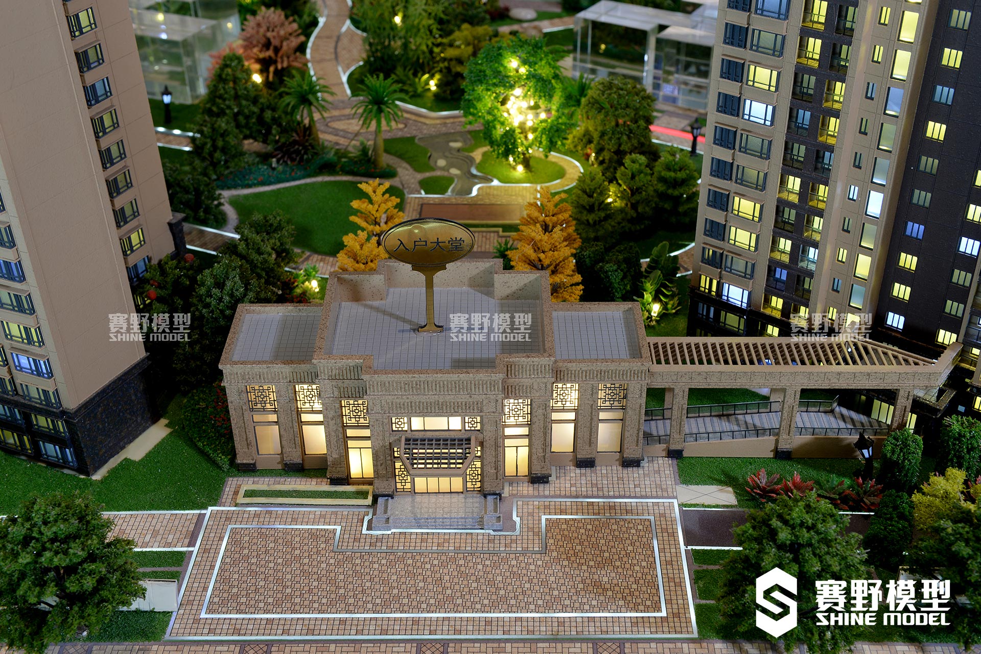 模型与LED屏一一呼应,视频播放到哪里便亮到哪里。提升科技感的同时,也增强了观者对俊发新螺狮湾的了解。赛野模型公司特地搭建小桥供观者行走,有利于深入沙盘模型,更全面细致的观看沙盘模型,并营造出小桥流水的氛围。